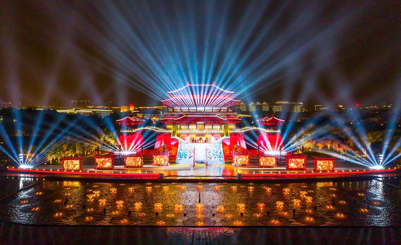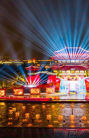 一池曲江水,千秋盛唐夢(mèng)。《大唐追夢(mèng)》演出是大唐芙蓉園即將推出的大型水舞光影秀,演出是由國(guó)家級(jí)制作人沙曉嵐擔(dān)任總導(dǎo)演,G20杭州峰會(huì)《最憶是杭州》、北京冬奧8分鐘執(zhí)行導(dǎo)演王醒及團(tuán)隊(duì)匠心打造的具有西安曲江特色“日游夜演”的全新概念文旅演藝產(chǎn)品。 大型水舞光影秀《大唐追夢(mèng)》依托芙蓉園恢弘大氣的山水園林景觀,將盛唐文化和游客參與深度結(jié)合,通過場(chǎng)景、故事的演繹和各類新技術(shù)的運(yùn)用,從內(nèi)容上嘗試將觀眾心境與劇中的實(shí)景環(huán)境相銜接,踐行一種新的“游船尋夢(mèng)”的體驗(yàn)關(guān)系。 觀眾席采用了“游船觀演式體驗(yàn)”形式,共設(shè)五艘游船,每艘游船可乘坐觀眾160人,共800座。觀眾乘船泛舟看演出的同時(shí),還能在水上游弋暢玩,隨著美輪美奐的場(chǎng)景,去探索神秘莫測(cè)劇情。展示出芙蓉園亭臺(tái)樓閣溢彩、廊橋水波輝映的迷人景致。營(yíng)造出穿越千年,貫穿古今的浪漫意境,讓觀眾真切感受古樸濃郁的盛唐文化氣息。 整場(chǎng)演出的表演區(qū)則通過多組可升降水幕景觀藝術(shù)裝置、多色激光投射、多維水噴泉設(shè)備、霧森系統(tǒng)、建筑投影、沉浸式環(huán)繞音響等現(xiàn)代科技手段,烘托美輪美奐的獨(dú)特意境,呈現(xiàn)出一臺(tái)全新沉浸式全域水幕景觀秀,讓觀眾全身心地融入、盡享文化盛宴。 風(fēng)光旖旎迷人處,最是曲江夜游時(shí)。當(dāng)夜幕降臨,夢(mèng)幻光影下的紫云樓無處不透露著濃郁文化氣息,芙蓉園用色彩相宜的照明設(shè)施,形成豐富的視覺層次感,營(yíng)造雅致的夜游氛圍,使紫云樓夜間樓體的塑造、光景氣氛、照明效果更加立體、生動(dòng),為景區(qū)增添新的魅力。 演出中還大量加入了時(shí)下最先進(jìn)、最流行的透明“冰屏”,有了冰屏加持,舞臺(tái)效果瞬間變得驚艷。觀眾在觀看時(shí),畫面懸浮于空中,清晰通透,像浮在透明玻璃上一樣,享受著如夢(mèng)如幻的沉浸式視覺新體驗(yàn)。 引人入勝的演出內(nèi)容、驚艷新奇的舞臺(tái)效果、豐富有趣的游玩體驗(yàn),大唐芙蓉園用拳拳誠(chéng)意帶游客閱讀歷史、感受人文。大型水舞光影秀《大唐追夢(mèng)》演出不僅展現(xiàn)出樹立旅游市場(chǎng)新旗幟、全力打造夜游市場(chǎng)新勢(shì)力的超強(qiáng)勢(shì)頭,更力圖將絢麗多彩、大氣恢宏的盛唐歌舞文化推向世界。 ...
